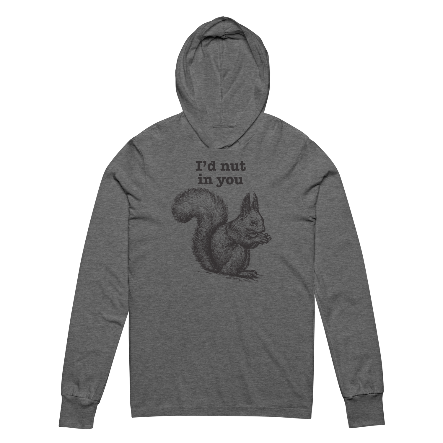 I'd Nut in You (Hooded T-Shirt) - Grey Triblend / XS is backordered and will ship as soon as it is back in stock.