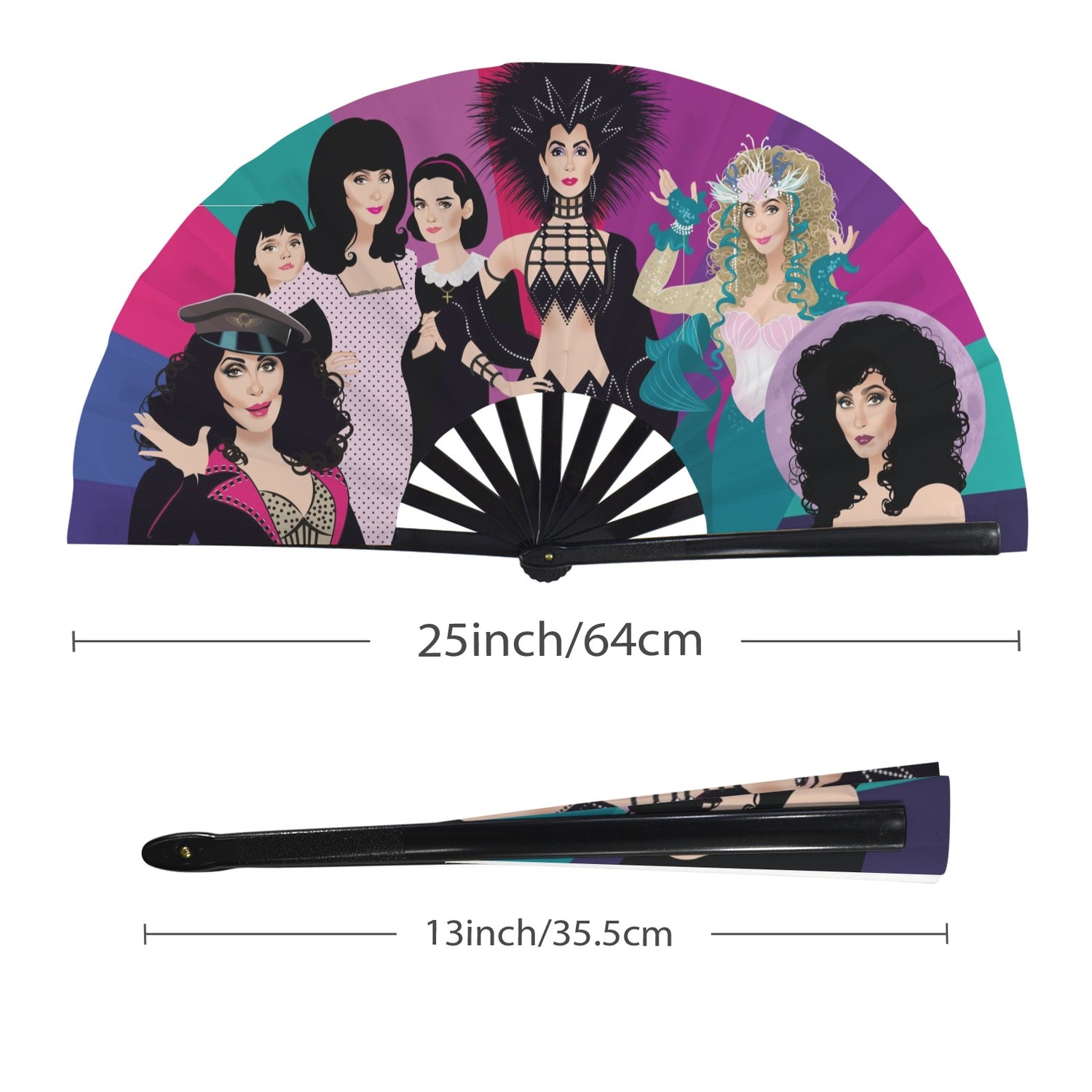 • Big and bold: 25" wide when open, 13" when folded (63.5 cm open, 33 cm folded).